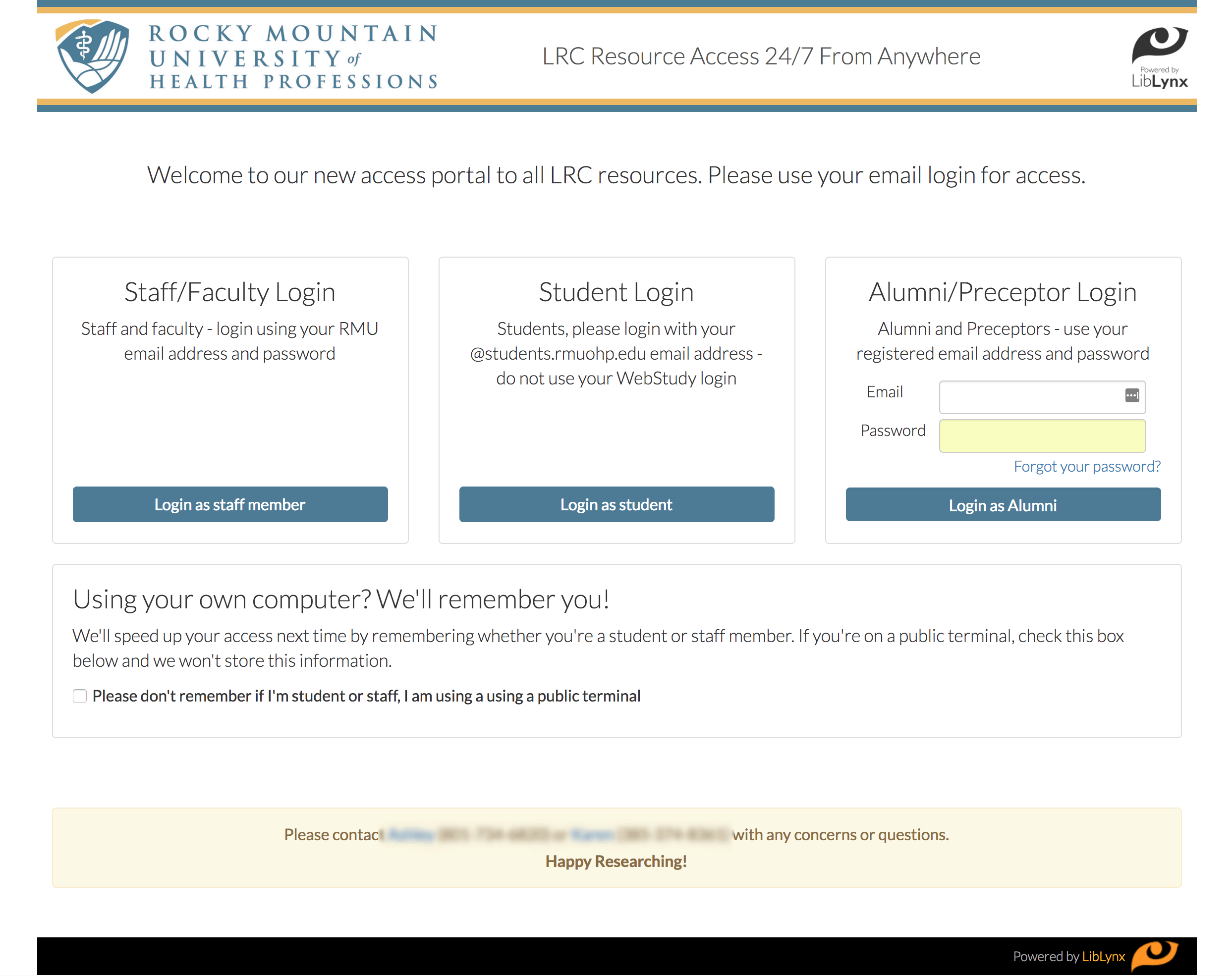 - Alumni and other affiliated users, whose identities are managed within LibLynx